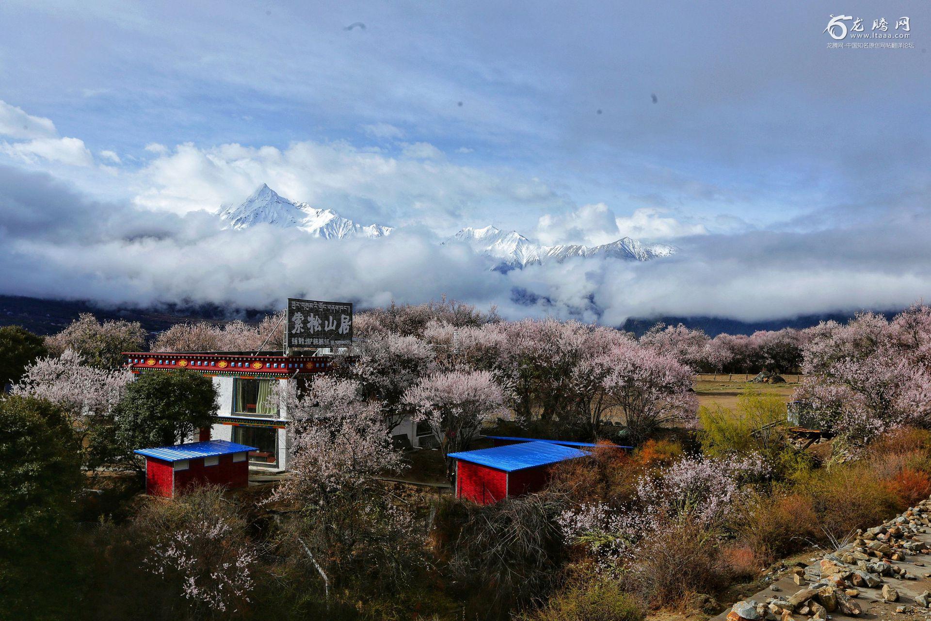 西藏自治区林芝米林县索松村,山下桃花盛开,远处是美丽的南迦巴瓦峰。 这个曾经隐身在青藏高原群山褶皱中的小山村,十几年前由于雅鲁藏布江大桥建成通车,吸引了越来越多的游客。