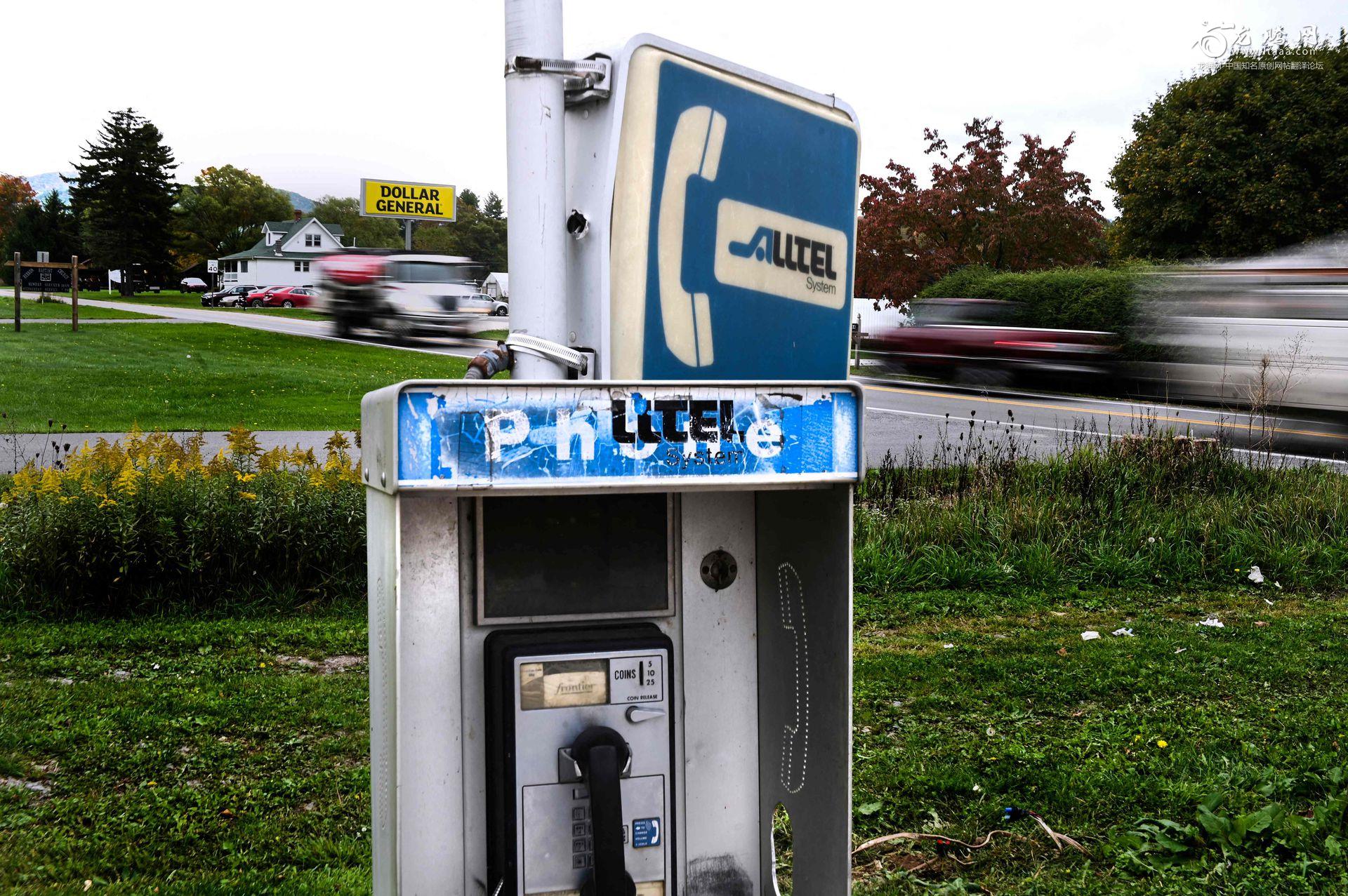 10月8日,在美国西弗吉尼亚州绿岸小镇,一名联合包裹运送服务(UPS)卡车司机在一个加油站停车场的一个废弃的付费电话附近巡逻。